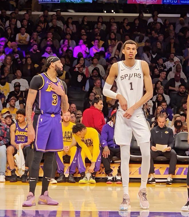 浓眉哥也是状元秀出道,在联盟打了多年,是公认的天赋男。他的身高、臂展、肌肉和运动能力,都是顶尖的。不过和文班亚马站在一起抢篮板的时候,就像是个小孩。就连美媒都调侃,浓眉在文班亚马身边就像是后卫。不得不说,文班亚马就是现役独一档的静态天赋,前途不可限量。